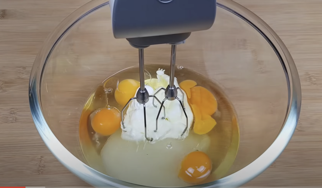 W osobnym naczyniu ubij jajka, śmietanę, cukier i olej.